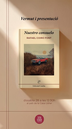 El dissabte 21 de febrer a les 12:30, presentarem de la primera novel·la de Rafael Coiro, “Nuestro consuelo” (editorial Comba). Comptarem amb la presència de l’autor i un bon vermut.